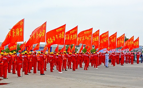 6月12日,江蘇鹽城三期項目成功舉辦主題為“黨員引領爭先鋒 建功立業在鹽城”勞動競賽啟動會暨先鋒突擊隊授旗儀式。來自高架三期全線6家施工單位的職工代表近350人參加活動。
