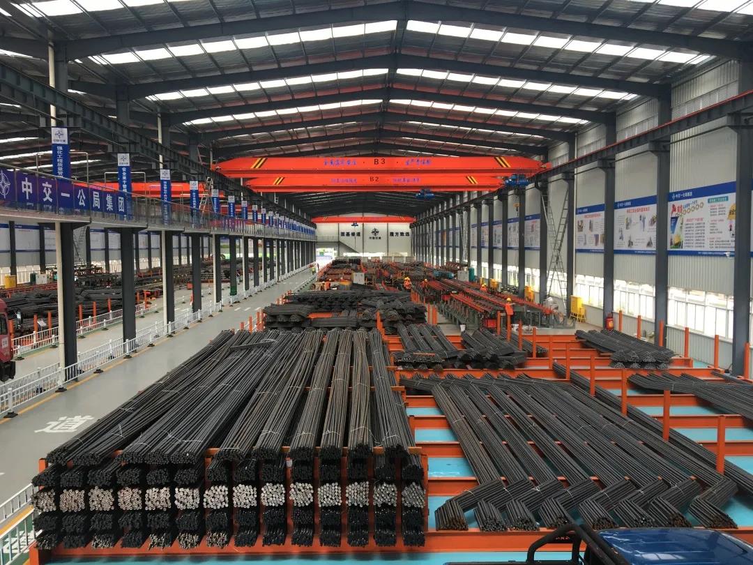 走進項目鋼筋加工配送中心,近7600平方米的場地內,材料半成品、成品、機械擺放整齊劃一、分類分層,橋式起重機正在搬運作業。